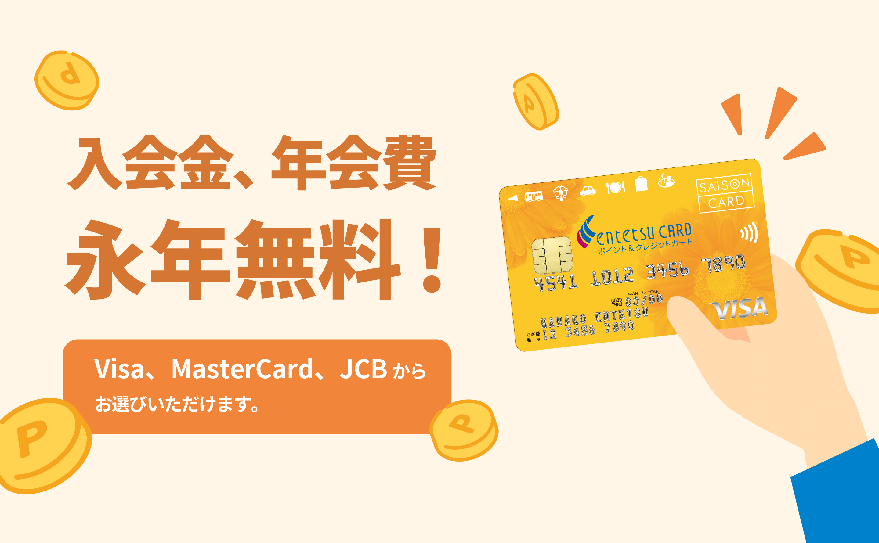 Visa、Mastercard、JCBからお選びいただけます。